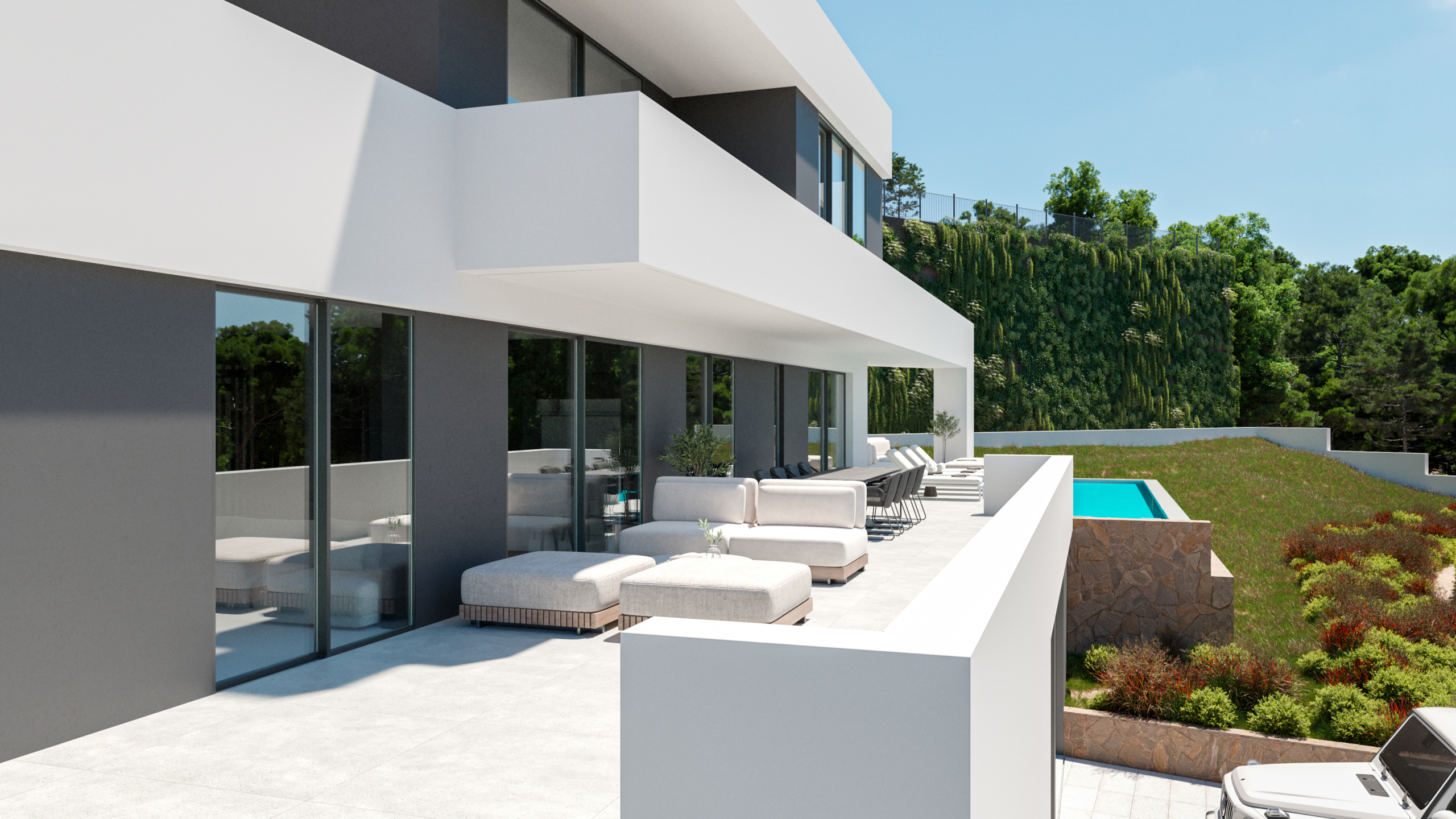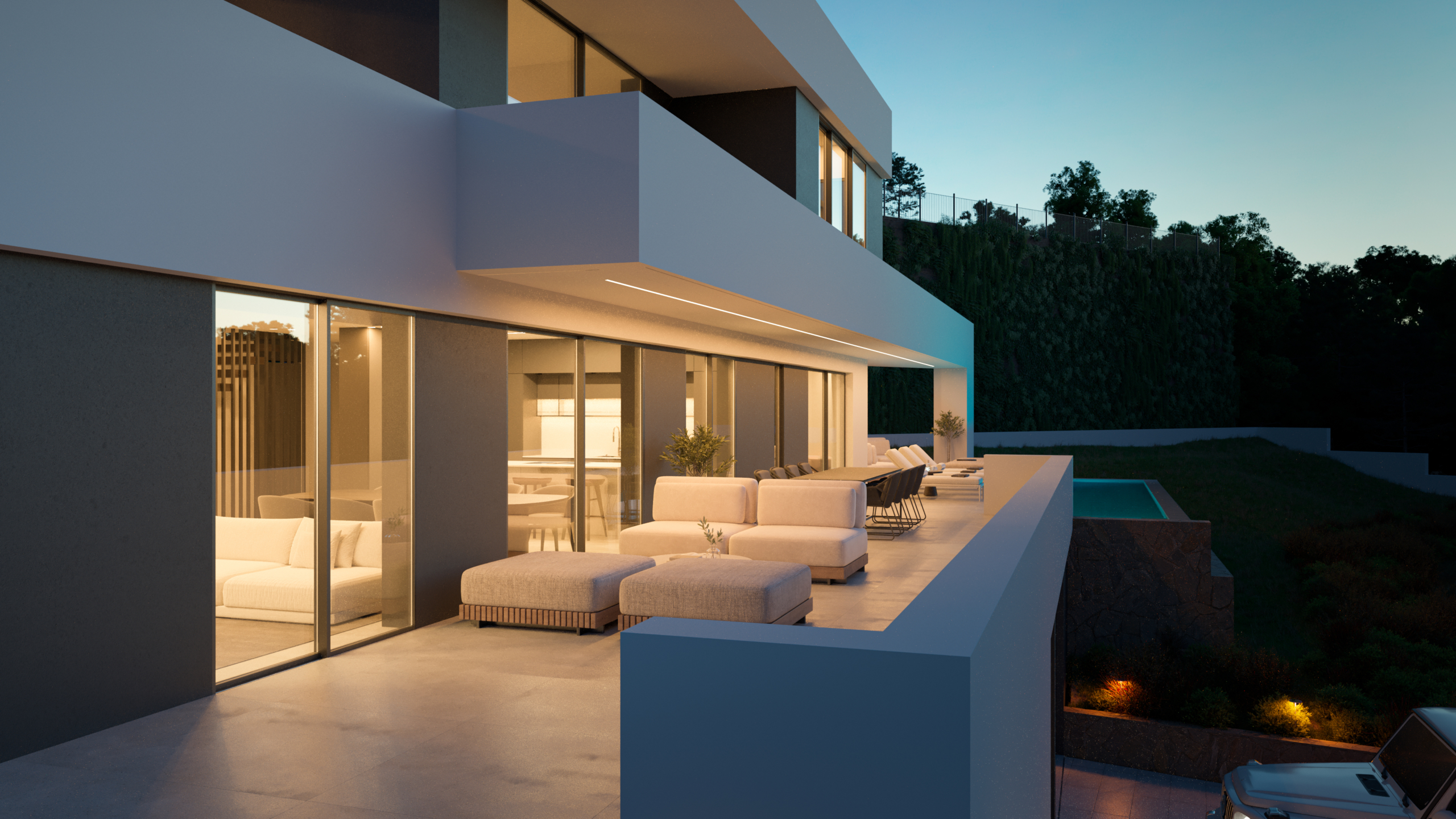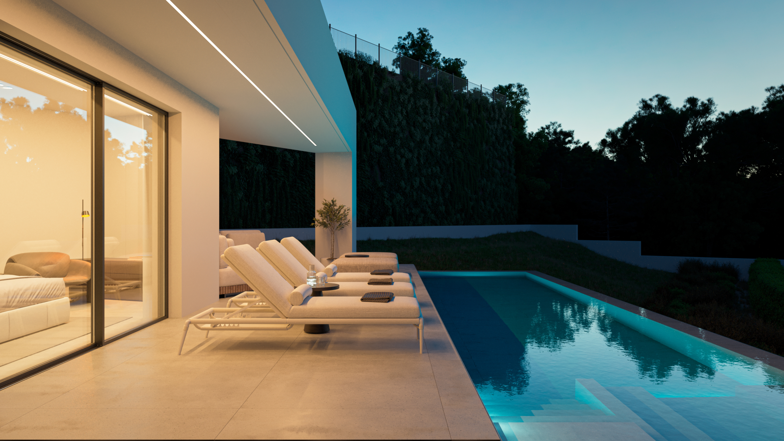 Orizon es un villa que combina modernidad y serenidad en perfecta armonía. Sus líneas rectas y su fachada blanca, realzada por amplios ventanales, permiten que la luz inunde cada rincón, conectando el interior con la naturaleza que la rodea. Las terrazas abiertas invitan a disfrutar del aire libre, mientras que los muros de piedra y la vegetación aportan una sensación de refugio y calidez. Es un espacio que inspira tranquilidad y se convierte en el escenario ideal para crear momentos únicos.
